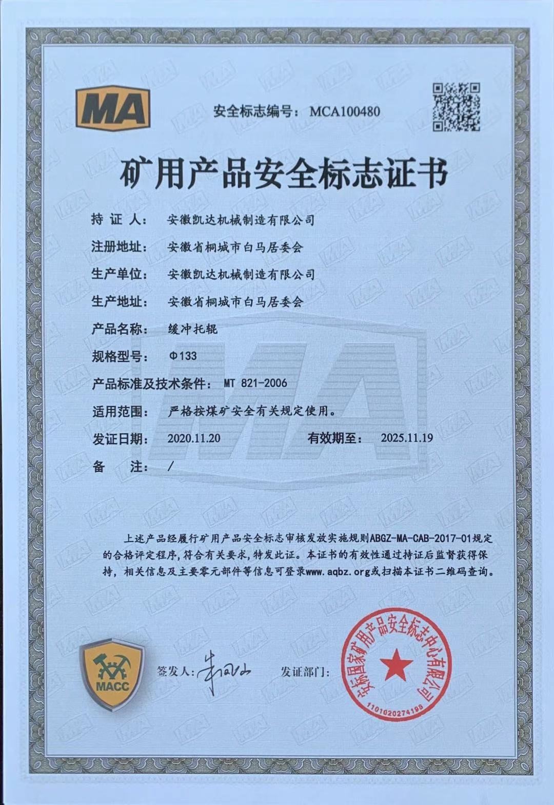 礦用產(chǎn)品安全標(biāo)志證書(shū)-緩沖托輥3