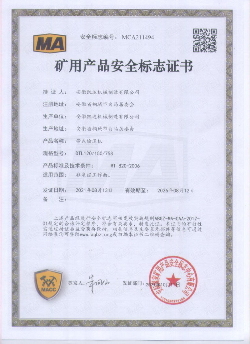 礦用產(chǎn)品安全標(biāo)志證書-帶式輸送機(jī)53