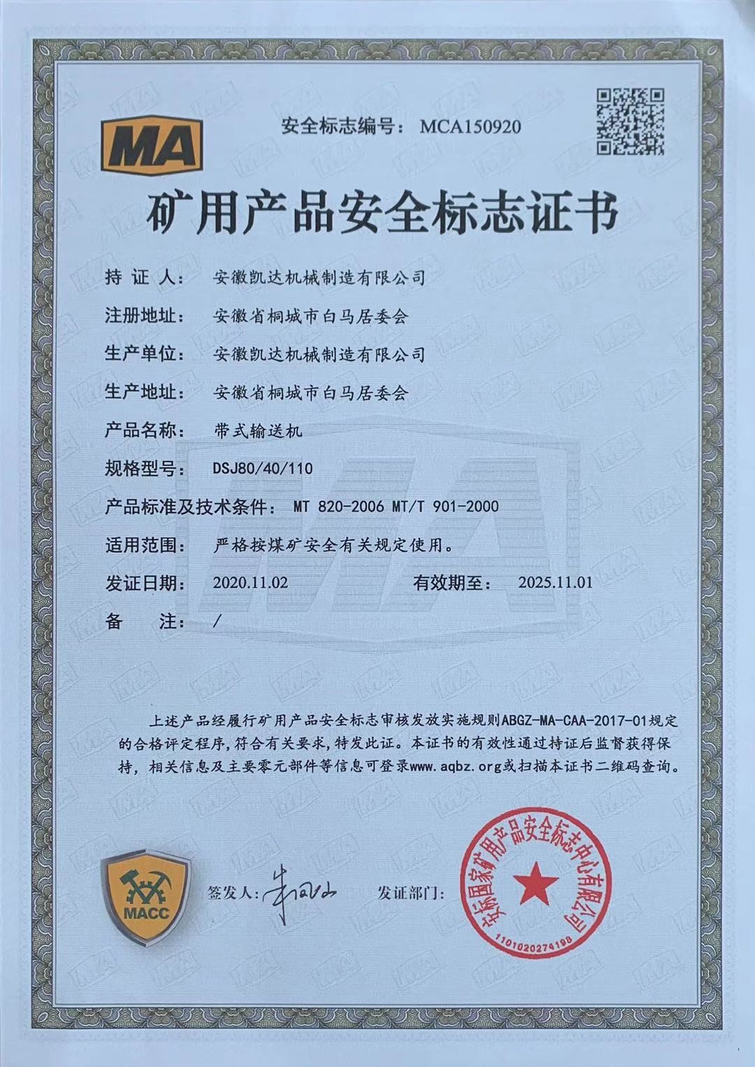 礦用產(chǎn)品安全標(biāo)志證書-帶式輸送機(jī)48