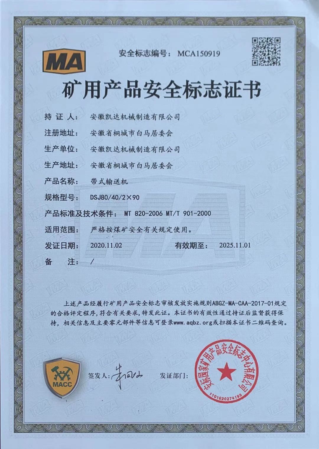礦用產(chǎn)品安全標(biāo)志證書-帶式輸送機(jī)47