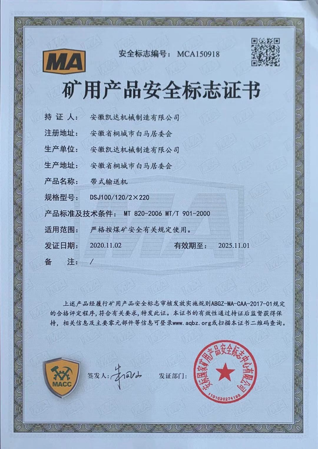 礦用產(chǎn)品安全標(biāo)志證書-帶式輸送機(jī)46