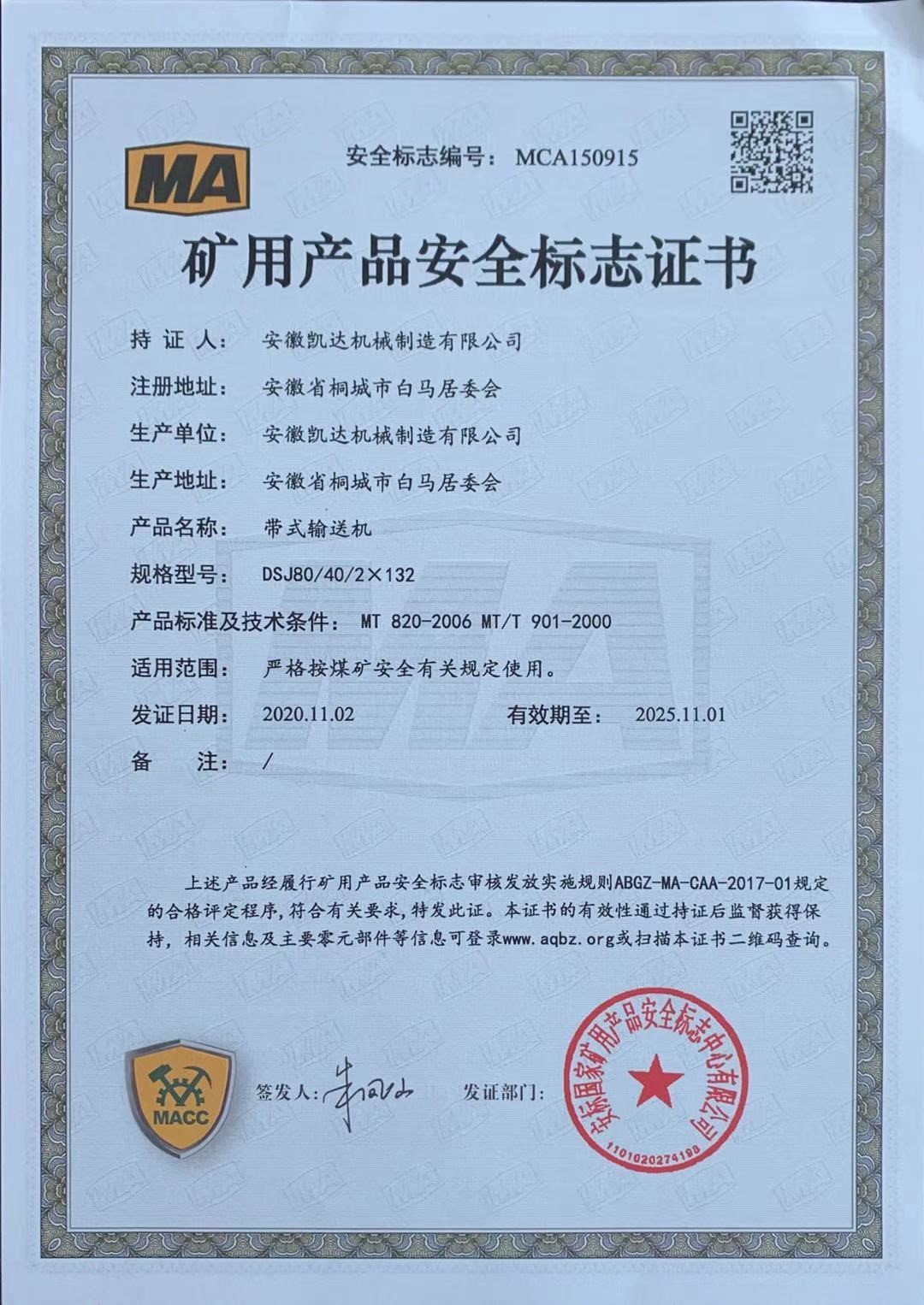 礦用產(chǎn)品安全標(biāo)志證書(shū)-帶式輸送機(jī)43