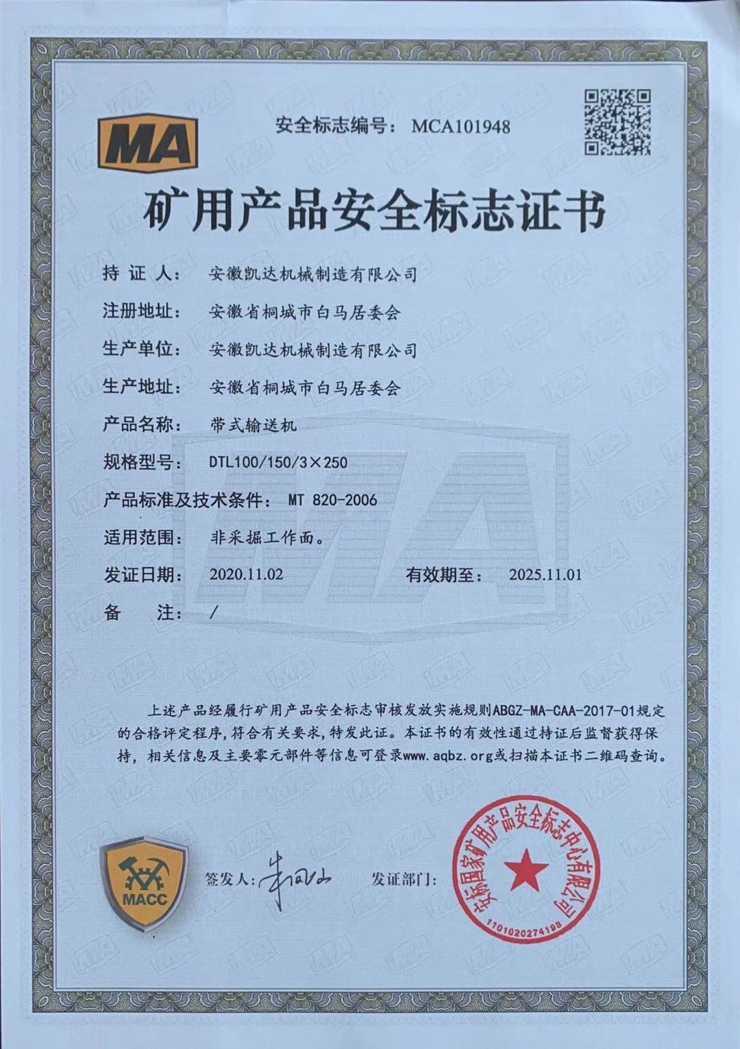 礦用產(chǎn)品安全標(biāo)志證書(shū)-帶式輸送機(jī)37