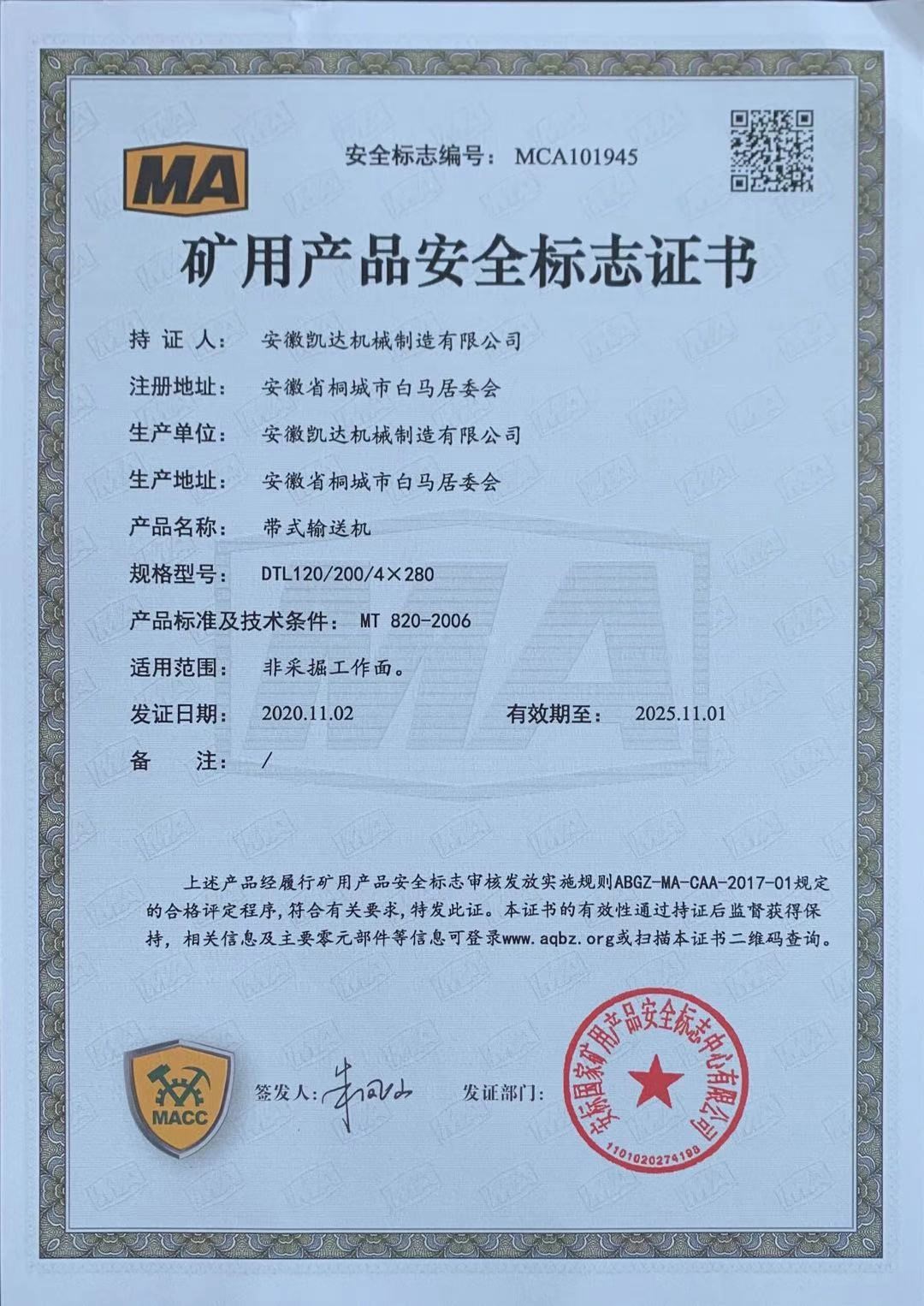 礦用產(chǎn)品安全標(biāo)志證書-帶式輸送機(jī)34