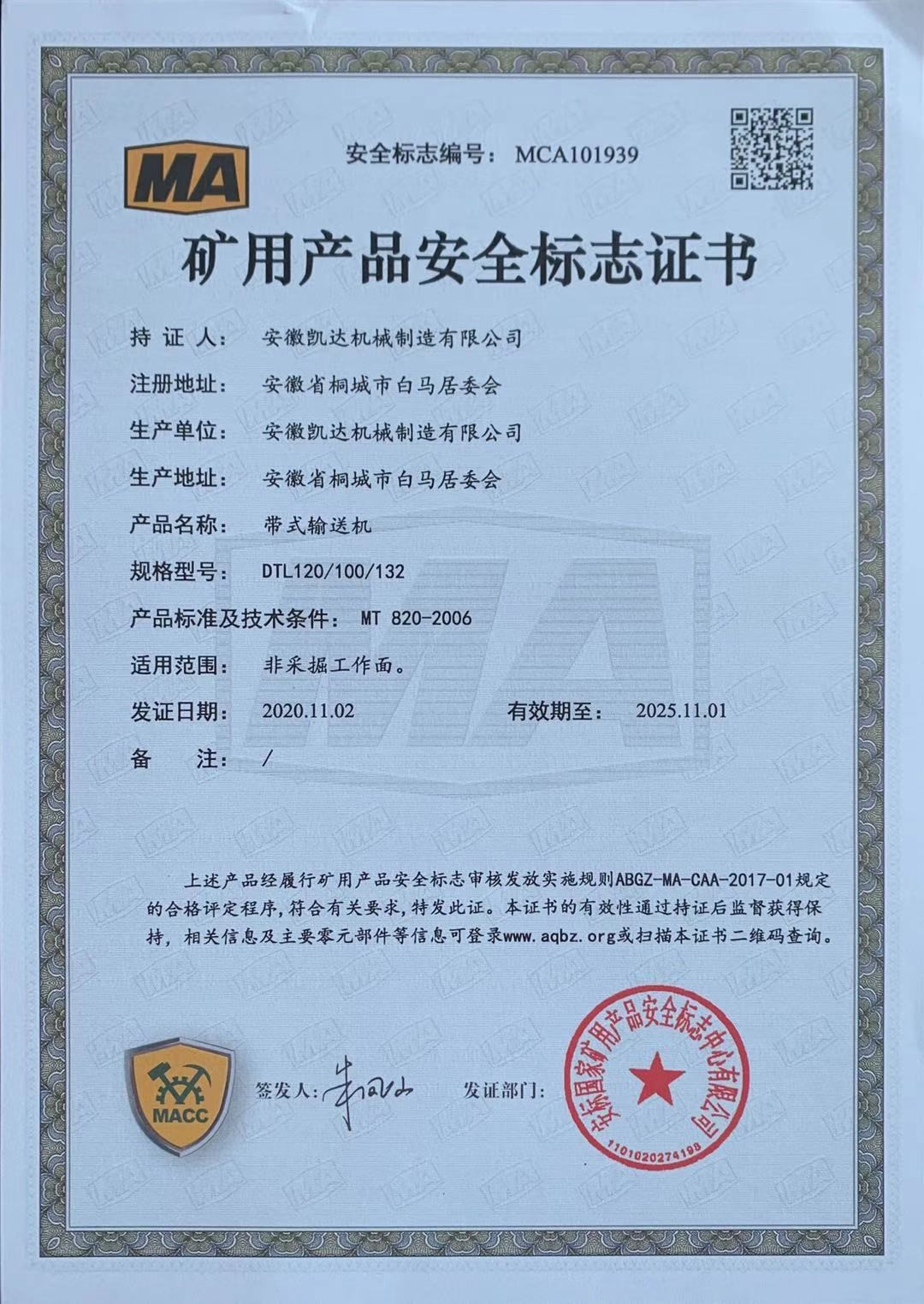 礦用產(chǎn)品安全標(biāo)志證書-帶式輸送機28