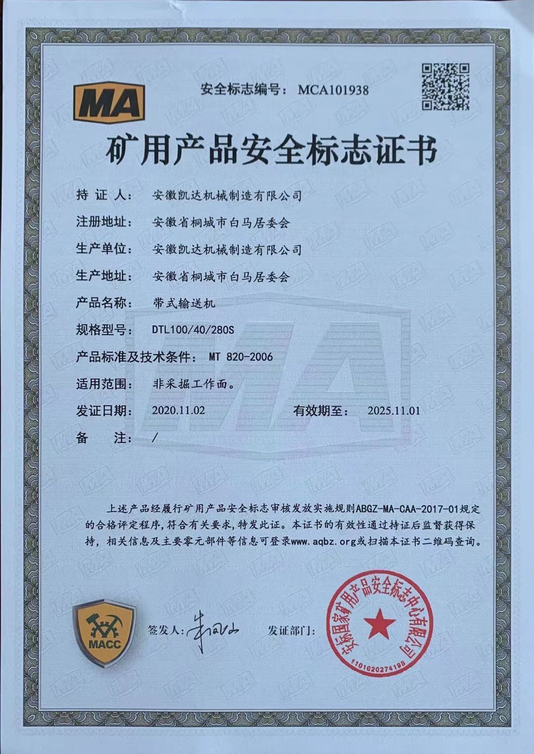 礦用產(chǎn)品安全標(biāo)志證書-帶式輸送機27
