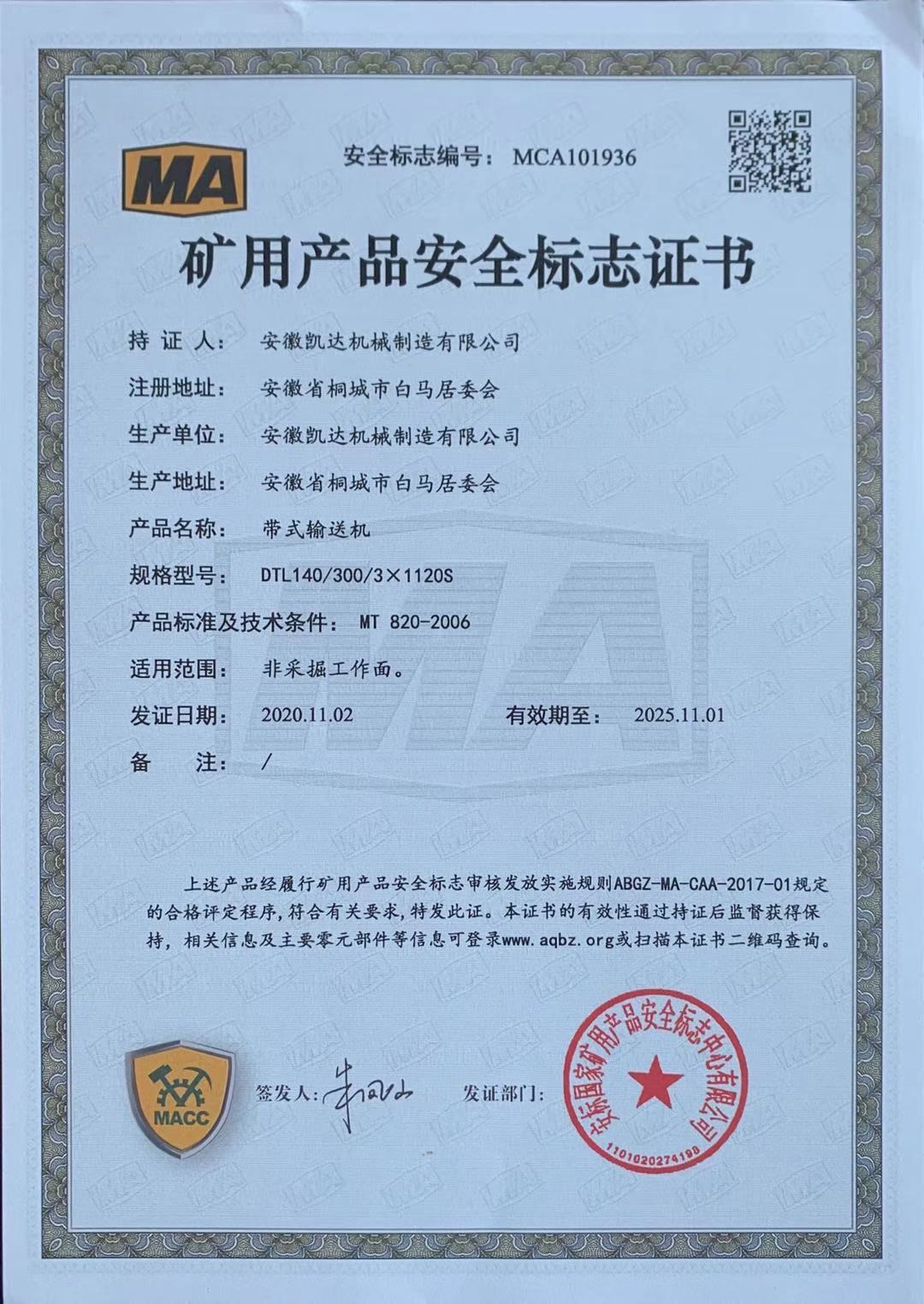 礦用產(chǎn)品安全標(biāo)志證書-帶式輸送機(jī)25