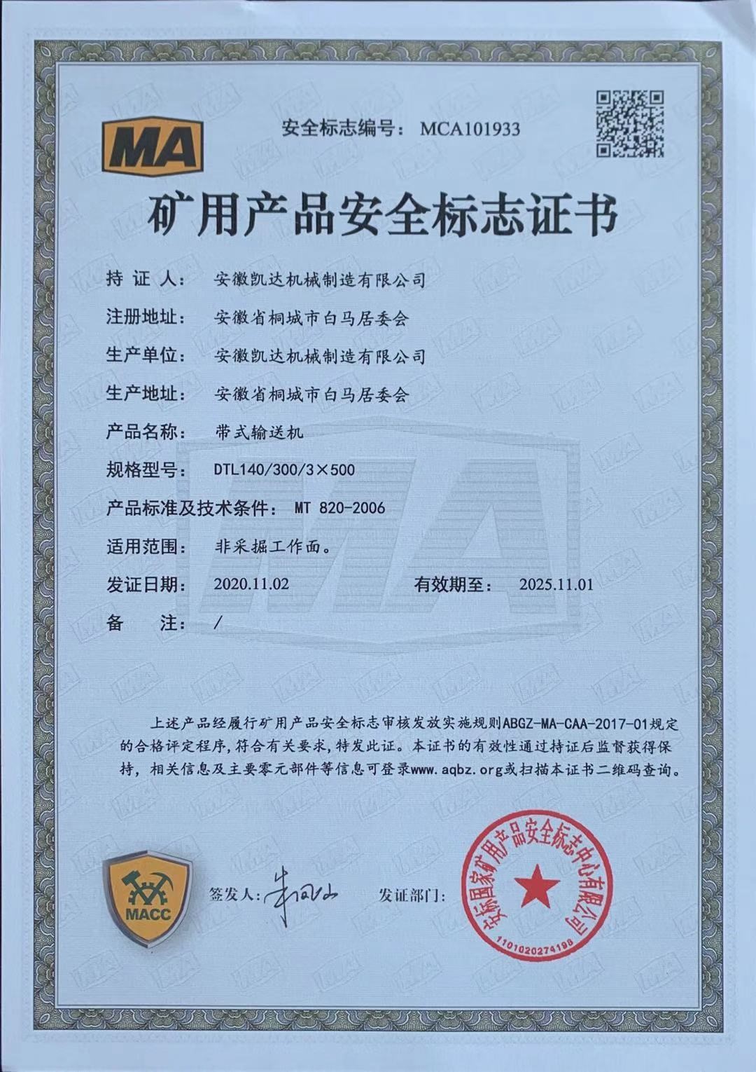 礦用產(chǎn)品安全標志證書-帶式輸送機22